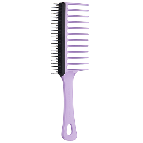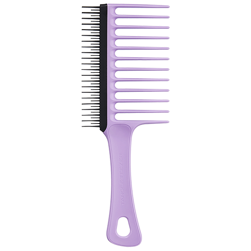 Tangle Teezer Wide Tooth Comb Purple Passion — двусторонняя расческа-гребень, разработанная для ежедневного ухода за кудрявыми волосами (в особенности для типов волос от 3С до 4С), а также для нанесения уходовых средств и разделения прядей. Подходит как для влажных, так и для сухих волос. Удобное сочетание сразу двух видов зубчиков позволяет легко и бережно распутать даже сильно вьющиеся волосы. Не используйте с феном.