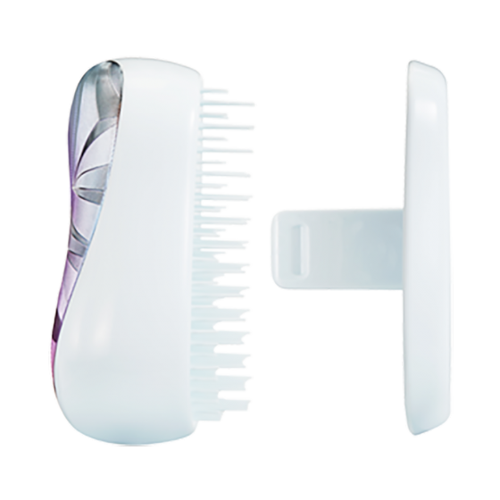 Расческа Tangle Teezer Compact Styler Smashed Holo Blue в хромированном корпусе с переливами сиреневого и розового оттенков – компактная версия знаменитой расчески Tangle Teezer, которая поможет поправить прическу в любой ситуации! Гибкие двухуровневые зубчики бережно распутывают волосы, не повреждая их. Благодаря компактной форме расческа поместится даже в небольшую сумочку, а плотно прилегающая крышка защитит зубчики от пыли и повреждений. Результат применения – гладкие и блестящие волосы. Подходит для всех типов волос. Не используйте с феном.